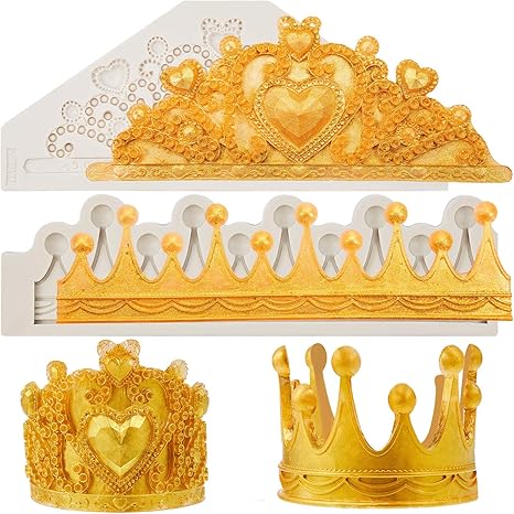 Amazon Com 2 Pieces 3d Crown Fondant Mold Crown Cake Topper Mold Silicone Crown Heart Mold Chocolate Mold For Diy Baking Cake Candy Wedding Cake Decoration Sugar Craft Polymer Clay Mold Kitchen